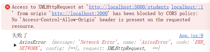 react 请求位于5000端口的服务器的学生数据,获取返回信息输出在控制台