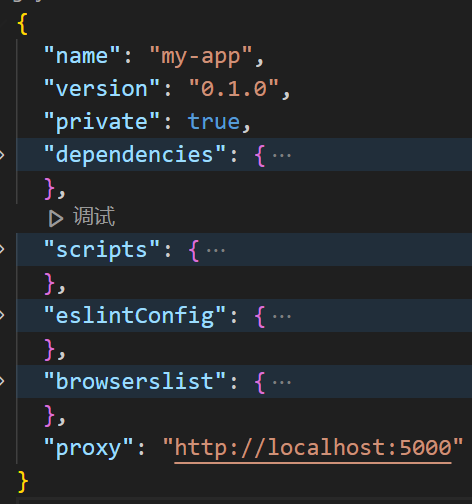 新增代理字段"proxy": "http://localhost:5000",表示代理接收到请求后转发到localhost:5000 的地址,即此处的服务端的地址